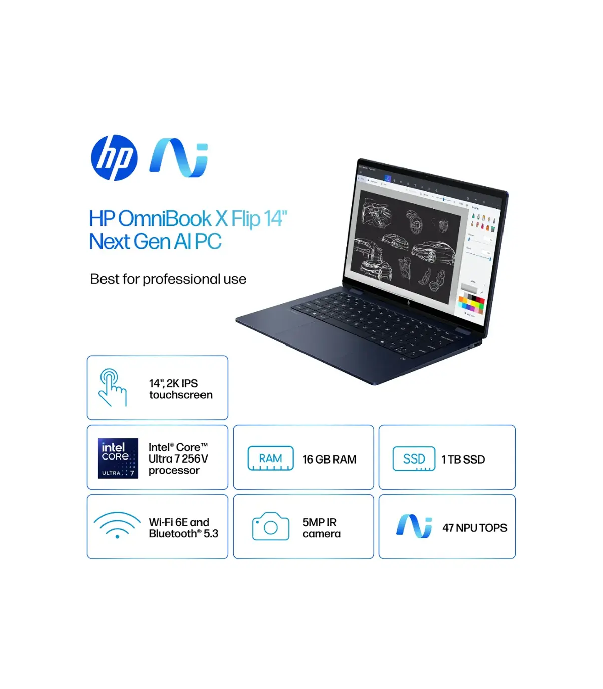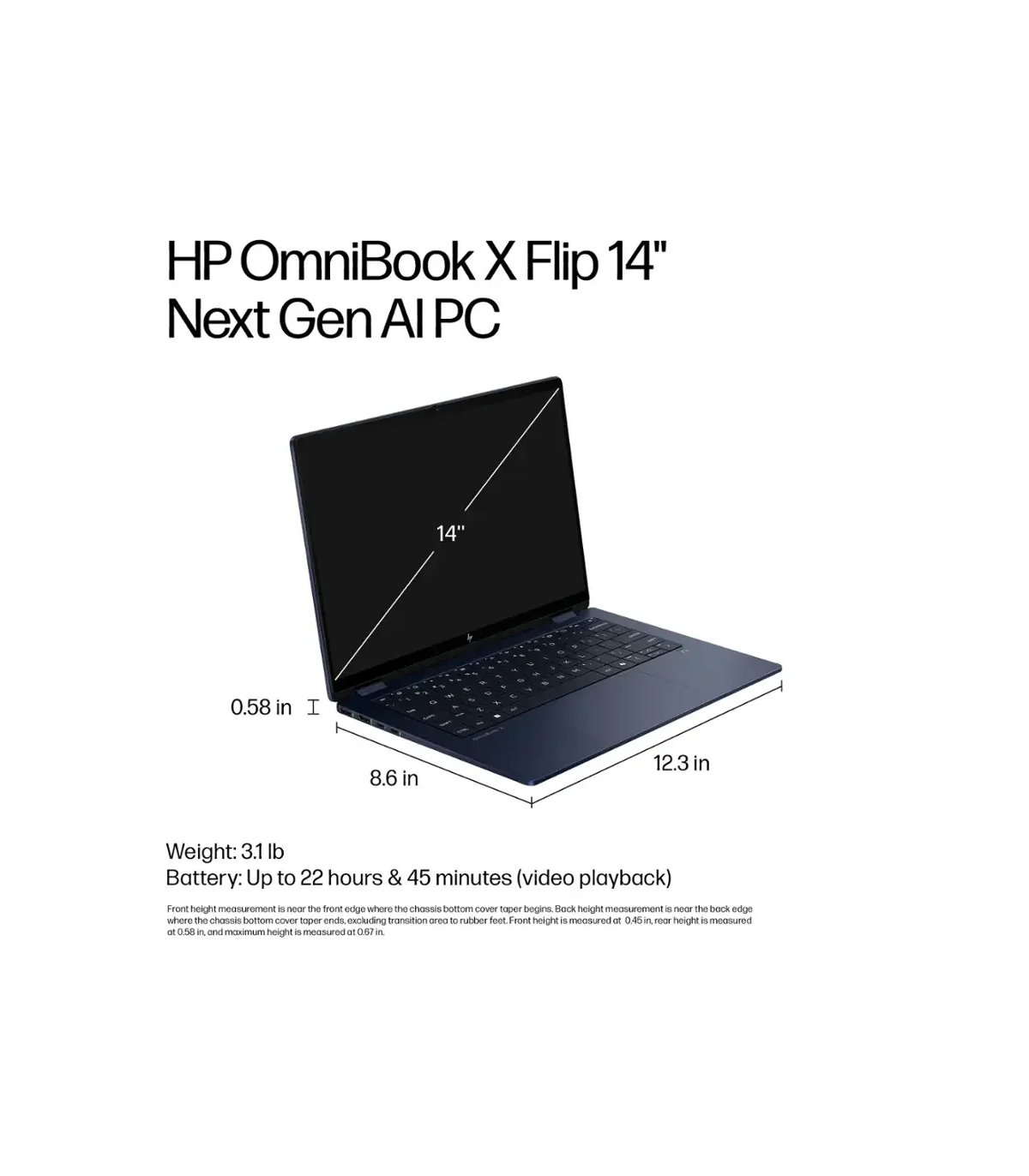 لپ تاپ 14 اینچی لمسی اچ پی مدل LATOP HP OMNIBOOK X FLIP 14 FM0023DX - B - ULTRA 7 256V - 16GB DDR5 - 2TB SSD - ARC 140V - Touch